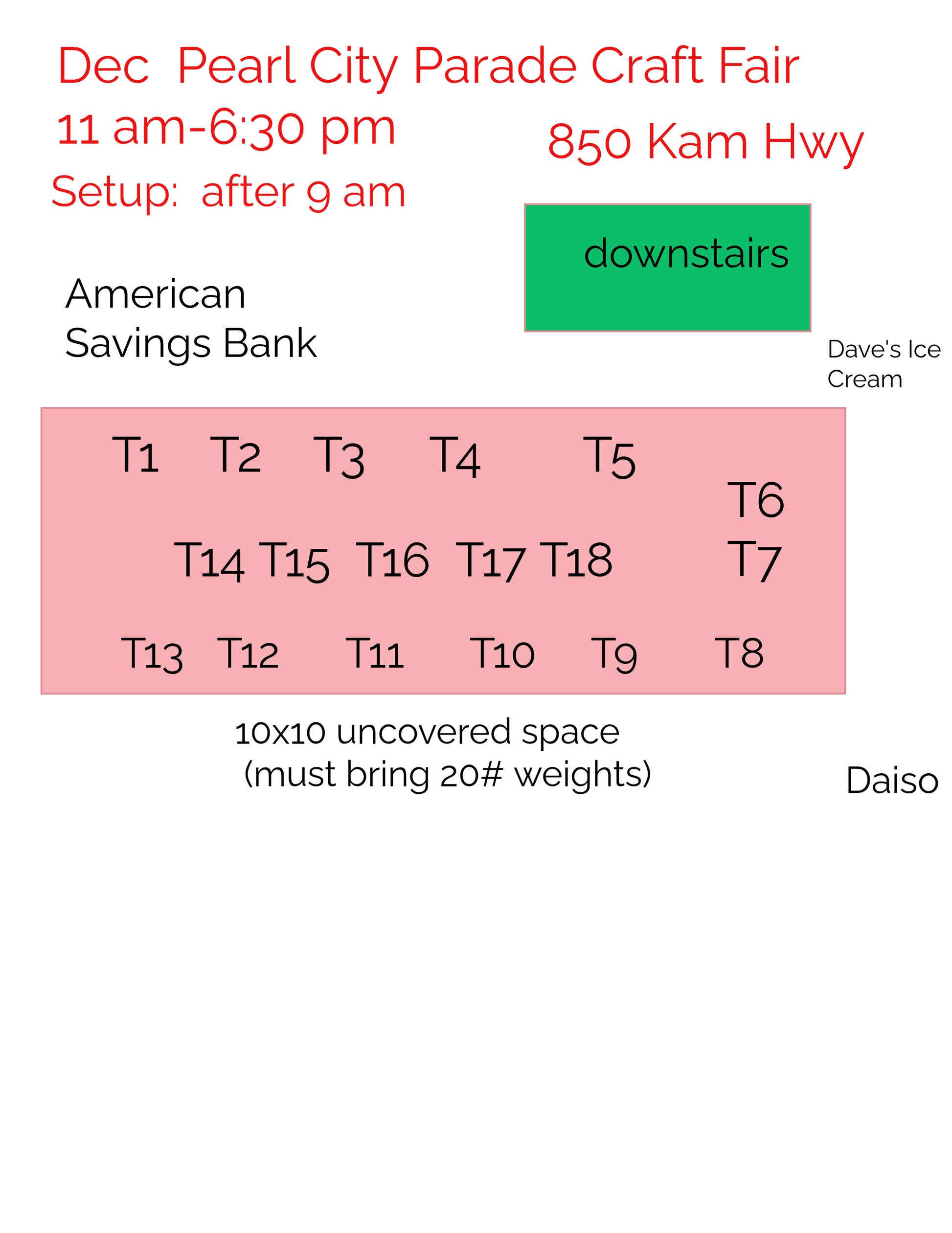 We're excited to announce our upcoming Pearl City Shopping Center Parade/Craft Fair on December 6th, from 11:00 AM to 6:30 PM! Set up from 8:00 am.